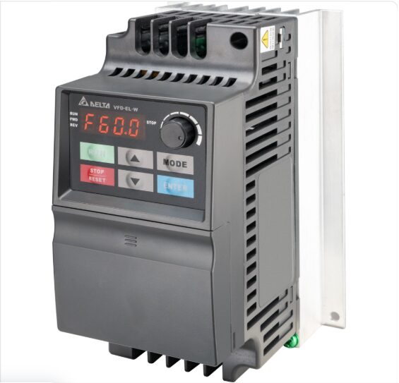 El Delta VFD004EL21W-1 es un variador de frecuencia (VFD) compacto de 0.4kW (0.5 HP) de la serie EL-W, diseñado para control vectorial de motores trifásicos utilizando alimentación monofásica de 230V. Cuenta con filtro EMC incorporado, panel de programación fijo y es ideal para ventiladores, bombas y cintas transportadoras pequeñas